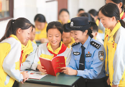 10月11日,民警向贵州省赤水市大同小学学生宣传网络保护及相关法律知识。